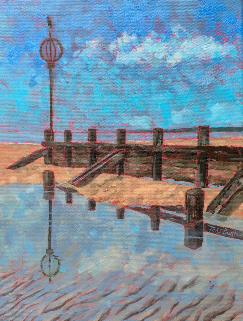 Groyne with the wind, Oil on archival box canvas, 40 x 30cm