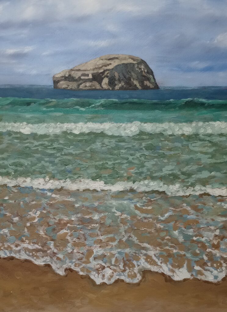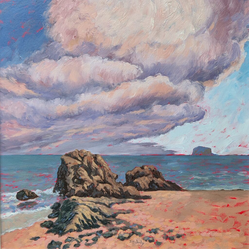 North Berwick Rocks – a bold seascape filled with shifting light and sweeping sky, with the Bass Rock on the horizon.