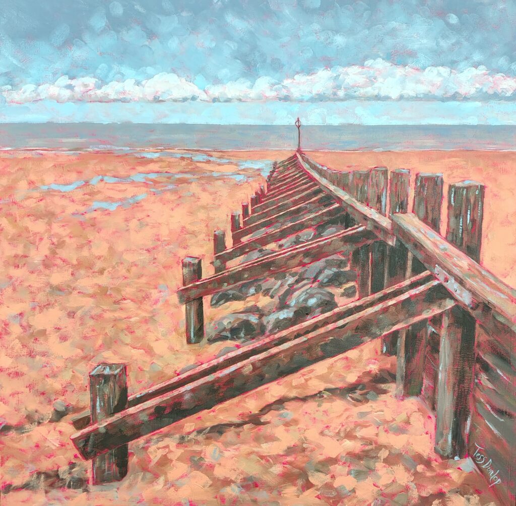 Sand By Me – a colourful exploration of Portobello’s groynes stretching into the distance, leading the eye to sea and sky.