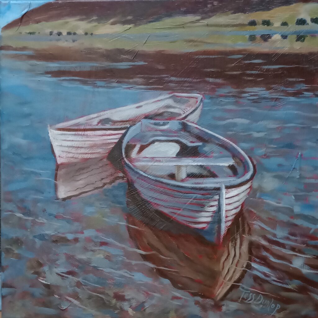 Here are the three pieces that were shown in Dundas Street. From left to right – Soulmates, Still and Girders No.! Soulmates captures 2 boats from North Berwick Harbour and has an ethereal feel to it. Still captures little row boats from Threipmuir Reservoir in the Pentland Hills Regional Park Threipmuir Reservoir – Wikipedia. Girders No.1 is, hopefully, easily recognisable as the Forth Bridge stretching across the Forth between North and South Queensferry and is painted on steel.