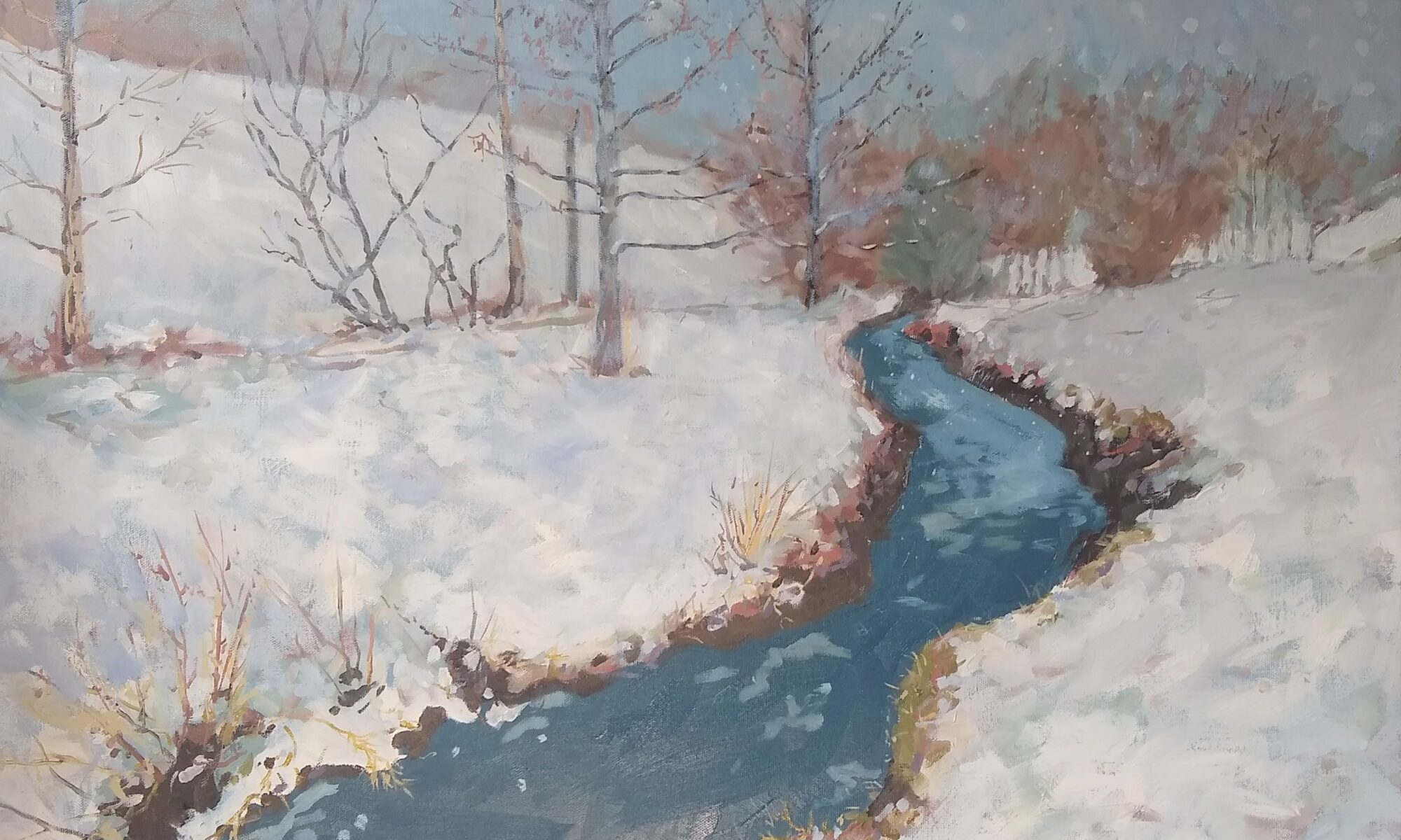 These gorgeous new pieces are on display in the Colinton Arts exhibition including this snowy beauty entitled A River Runs Through It which was dropped off this afternoon. This piece features a snowy scene from Braidburn Valley Park in Edinburgh.