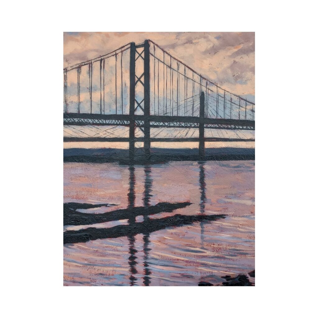 Also exhibited there are 2 other pieces. First up is the gorgeous piece below featuring the instantly recognizable road bridges across the River Forth in Scotland, set against a summer sunset.